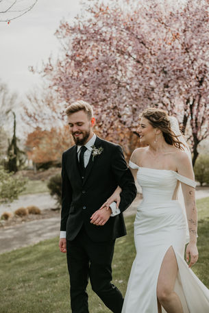 Shelby and Maddox’s wedding at Airfield Estates Winery took place at the height of cherry blossom season when the vineyard felt luminous and alive. Their faith was thoughtfully present throughout the day shaping the celebration with depth and intention.